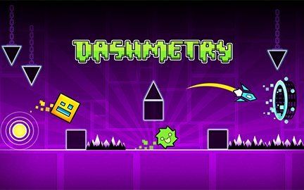Jump into Dashmetry using one intuitive control: left mouse button, up arrow key, or spacebar. Select your favorite for fluid cube maneuvers across rhythm-synced obstacle realms.